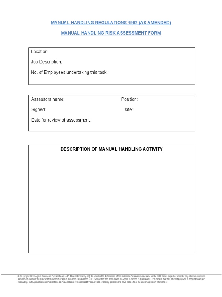 Form To Record Manual Handling Risk Assessment Cipd Hr Inform